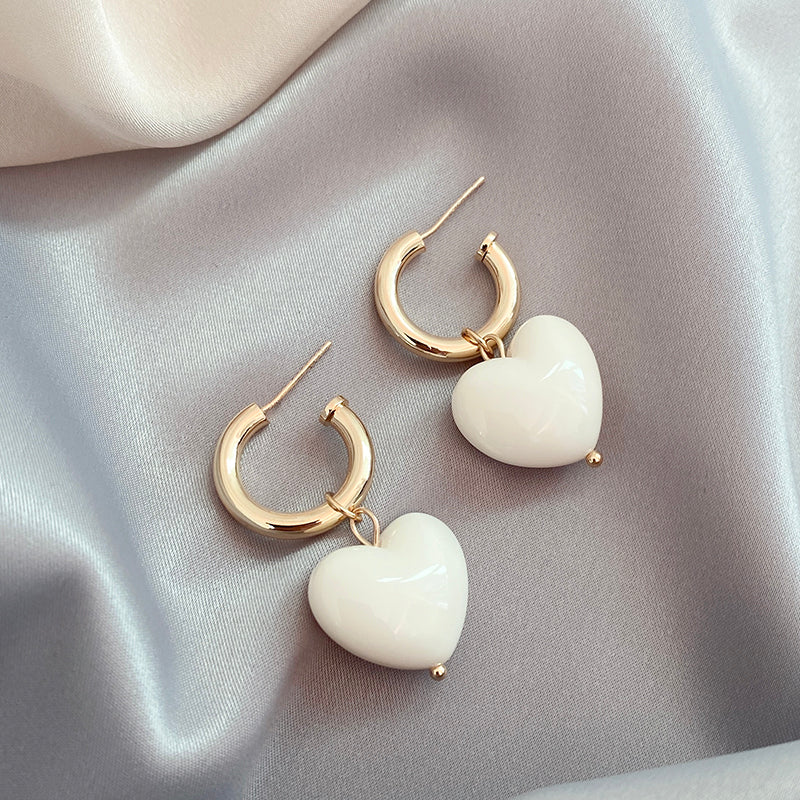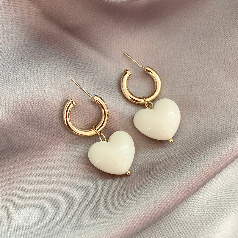 Boucles d'oreilles Coeurs Blancs en Or